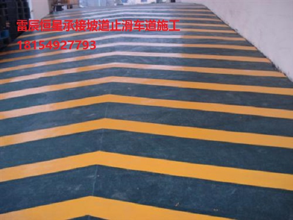 新型無震動防滑車道已逐步取代傳統防滑車道。其*大優點是減少了車輛輪胎與車道間摩擦的噪音,降低了普通車道對汽車輪胎的損傷,阻尼性能強,駕馭感舒適,起伏性低。彩色底紋和防滑層,既美觀,又對駕駛者具有警示減速作用,適用用于各類停車場上、下坡道場所