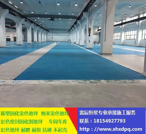 1、混凝土納米染色地坪是在混凝土密封固化地坪的施工後期,用納米染色劑進行染色操作,并結合拋光工藝而成的一種整體的、高強度、高致密、高耐久的彩色混凝土地坪。從根本上解決密封固化地坪沒有顏色的缺點。