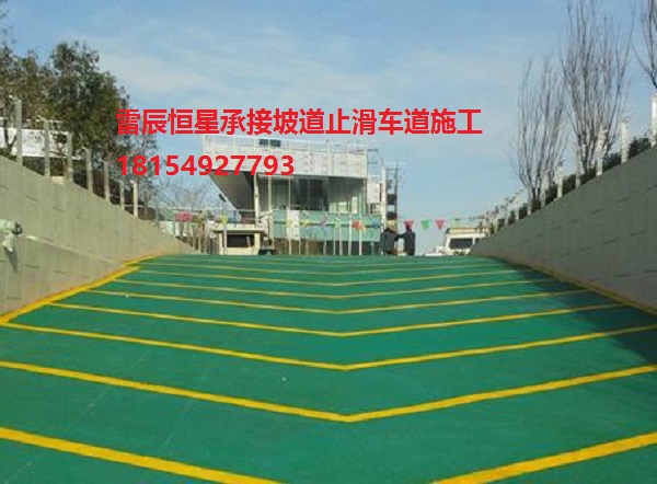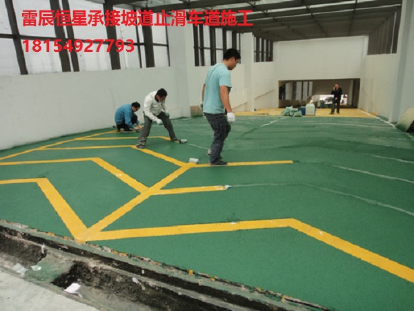3.防滑車道地坪(止滑車道)是一種多角性硬度極高的礦物骨料與改性樹脂、其它摻和物和外加劑組成,采用特種現(xiàn)場工藝施工而成,其成品具有防滑耐磨、舒適無震動(dòng)等多種優(yōu)異的性能,而且圖案美觀鮮明、標(biāo)志性強(qiáng)。相對于傳統(tǒng)的水泥坎車道的震動(dòng)大、易粉化、不舒適、檔次低和防滑地磚車道、花崗巖車道的阻力小、易滑危險(xiǎn)等缺陷,無震動(dòng)防滑車道已成為汽車上下坡道、交通道路、美化區(qū)域的*產(chǎn)品。 適用范圍:各種停車庫的上下坡道、道路路口、自行車道路、公交車道、汽車上下坡道、機(jī)場上下坡道、斜坡及路面等有特殊防滑要求及處理的部位、路面、美化區(qū)域等。