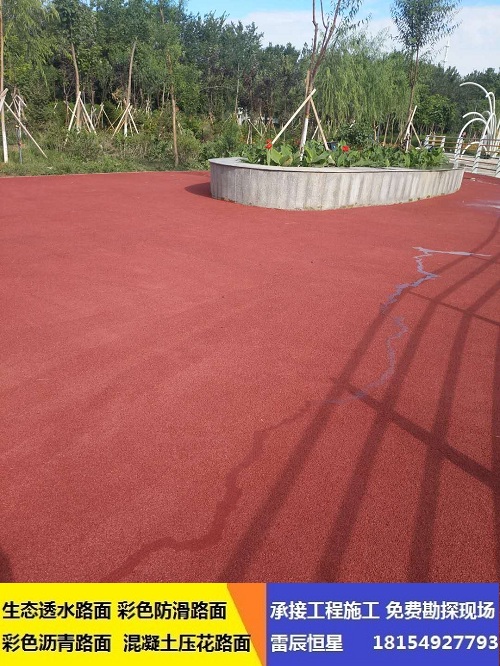 冷涂型彩色防滑路面材料的類型有丙烯酸型、環(huán)氧型,聚氨酯型等,其為液態(tài)。施工時(shí),無需大型設(shè)備,只需將基料與固化劑按比例混合后,用滾涂的方式涂鋪于路面,并添加防滑沙層,經(jīng)過化學(xué)交聯(lián)反應(yīng),快速固化成堅(jiān)韌的漆膜,形成彩色防滑路面。 施工簡單,快速簡便,目前已經(jīng)成為市場主要的選擇對象。其中聚氨酯型由于其綜合性能更有優(yōu)勢,所以在國內(nèi)目前的市場占有率*高。